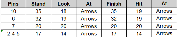 I noticed I was quite a bit different on your numbers for the 10 pin (several boards right for me) I watched the JR Pro shop vid with Frankie Lavoie and he said his 7 pin was 25/25. I tried this and I went in the left gutter about 2/3 down the lane so I moved 5 right.